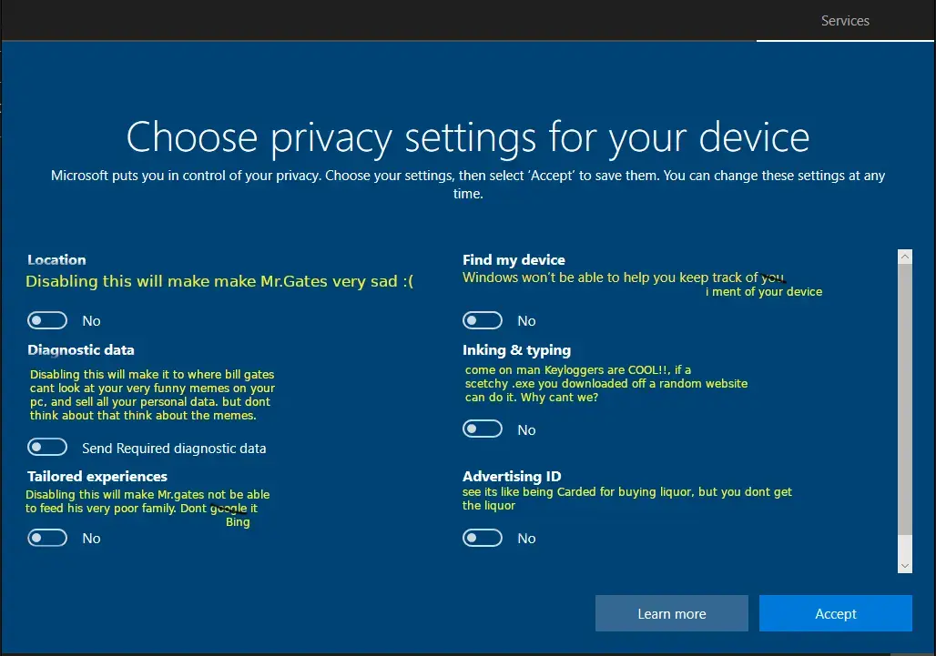 I wish Windows didn’t spy on you in the bathroom. But this helps: