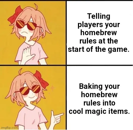 I love using magic items in place of house rules. It makes it easier for everyone when “house rules” are explicitly spelled out in an item description, and helps prevent players from being confused or surprised about which rules do and do not get enforced and in which way.