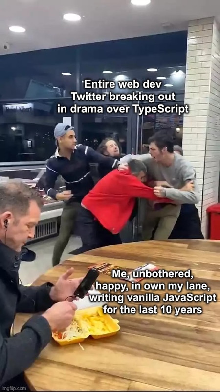I feel like there’s no typescript drama, just JavaScript drama. Things are pretty happy in the TS community. I’ve been writing js code since it literally first came out. I’m definitely no js hater. In the early days js code bases quickly turned to spaghetti code, but I genuinely think the js community has done miracles turning what was essentially a super simplistic toy language into a seriously good production quality language. I’ve seen first hand how much work has gone into it, and while most of the js community has been great with embracing change for the better, there’s always been the niche of detractors against any change that adds complexity even when it makes coding safer and more productive.