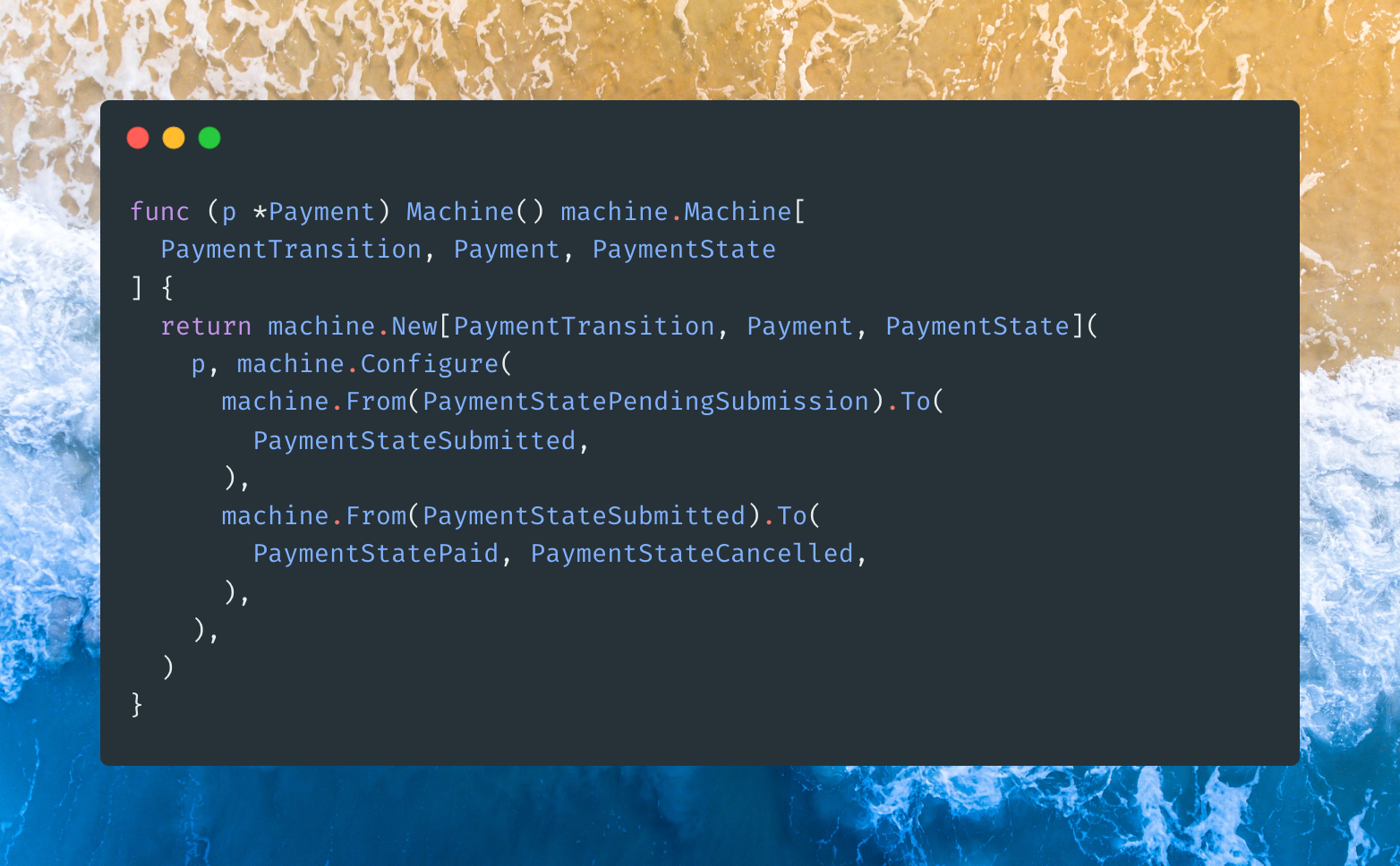 It’s long running, so you want a database so you can store your state. If you’re storing state, locking it into a state machine makes sense.