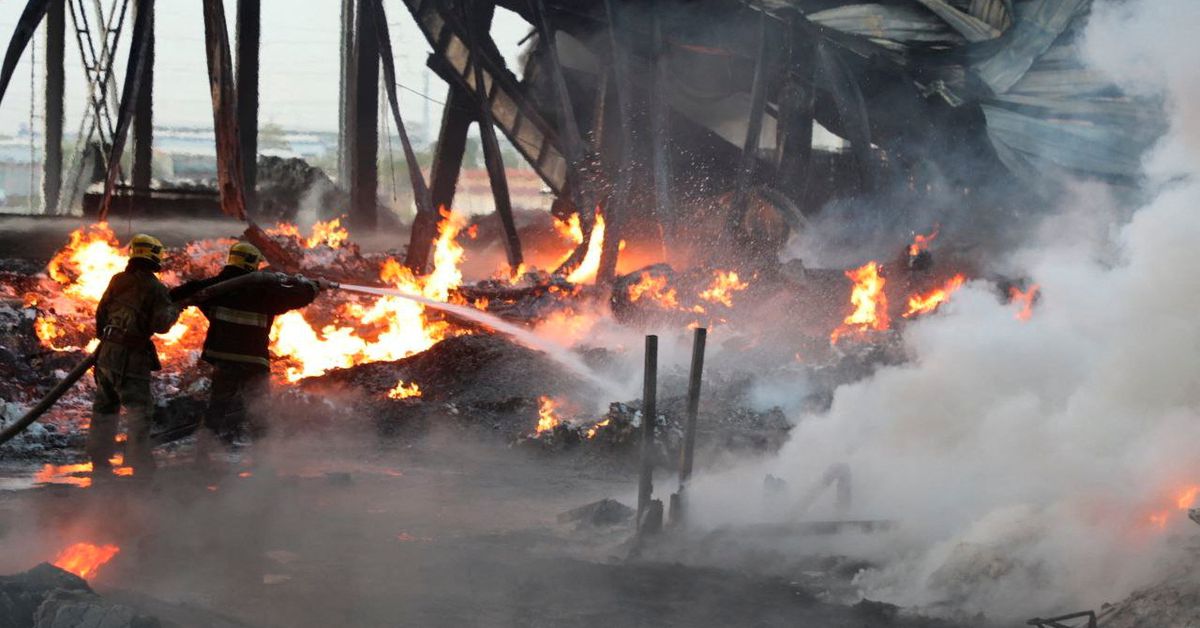 In video and photographs on social media, flames soared into the night sky, with a huge cloud of smoke hanging above the warehouse, but the cause of the explosion was not immediately clear.