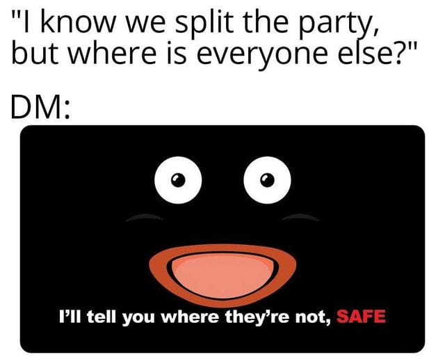 Gormadt@lemmy.blahaj.zone to RPGMemes @ttrpg.network · edit-22 years ago"Let's split up and look for clues." 1 hour laterfiles.catbox.moeimagemessage-square26linkfedilinkarrow-up1222arrow-down111file-text