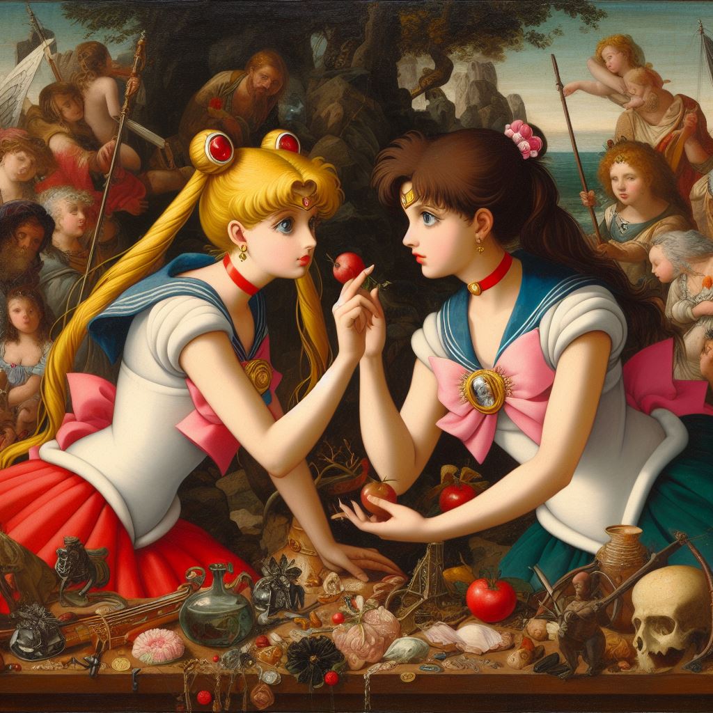 Ok I will bite: “sailor moon in the style of the sistine chapel”