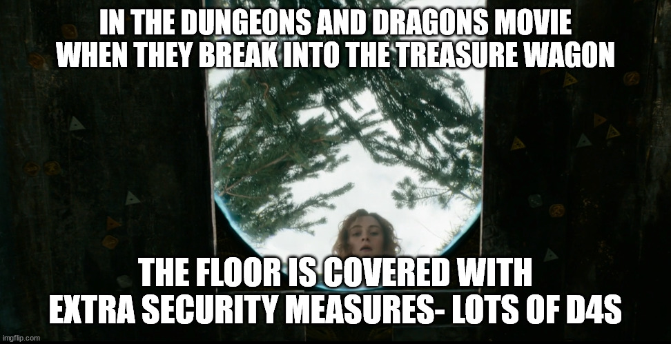 Hm. Re-watching (scene inside the wagon starts about 1:27:00) and yeah, as she’s swinging in and we see the floor from a different angle, they are flat. But at least one of them in this pic looks like a d6 with pips.