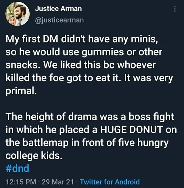 I do this too. Instead of minis, I tape a drawing onto a Starburst and whoever kills the monster gets to eat the Starburst. I’m gonna have to get something like a donut for the boss fight at the end of the adventure I’m running rn.
