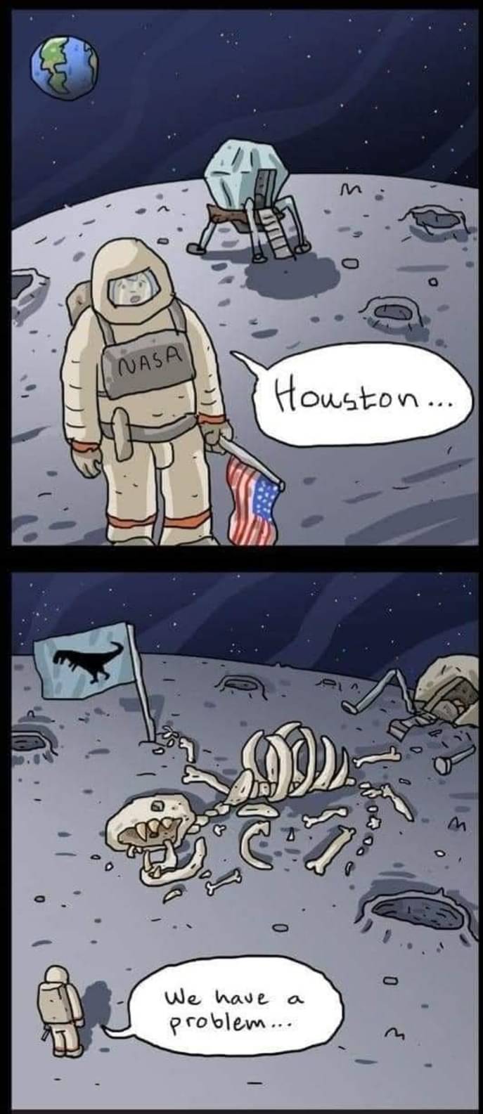 I’m just thinking Elon Musk got tired of being pissed on and decided to drop some dinosaur bones on the moon to fuck with everybody else. If this were actually true I’d give him a little respect.