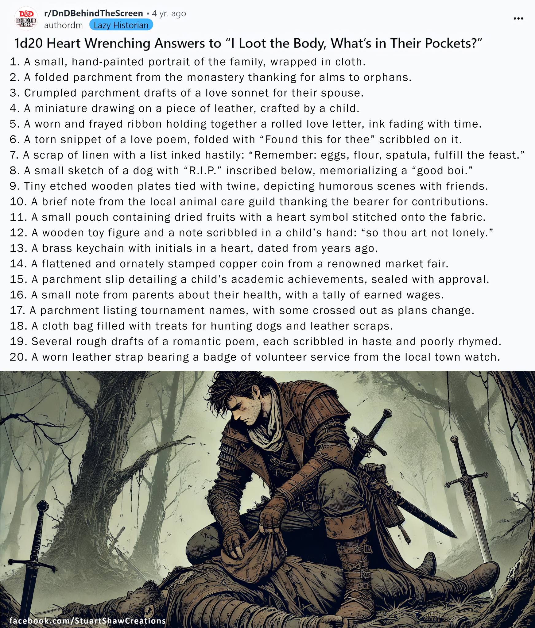 “Great I’ll put it in the bag of holding. How much is it worth? I rolled a 20, you have to tell me”