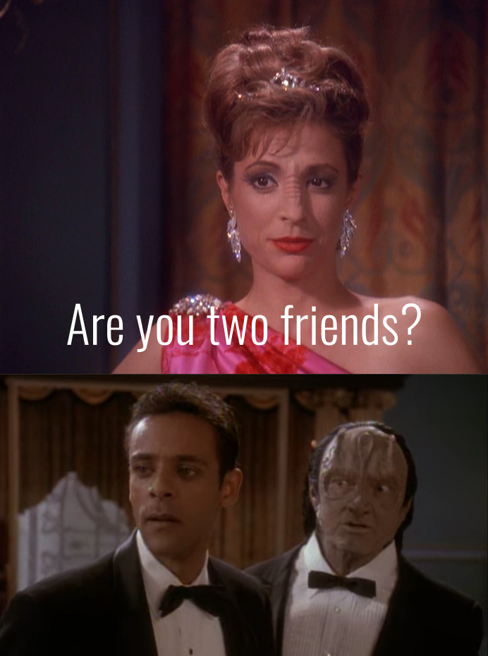 32nd Century Historians: “Doctor Bashir was good friends with a Cardassian tailor named Garak. Though both men would occasionally take a romantic partner, their friendship was the most enduring relationship in both men’s lives.