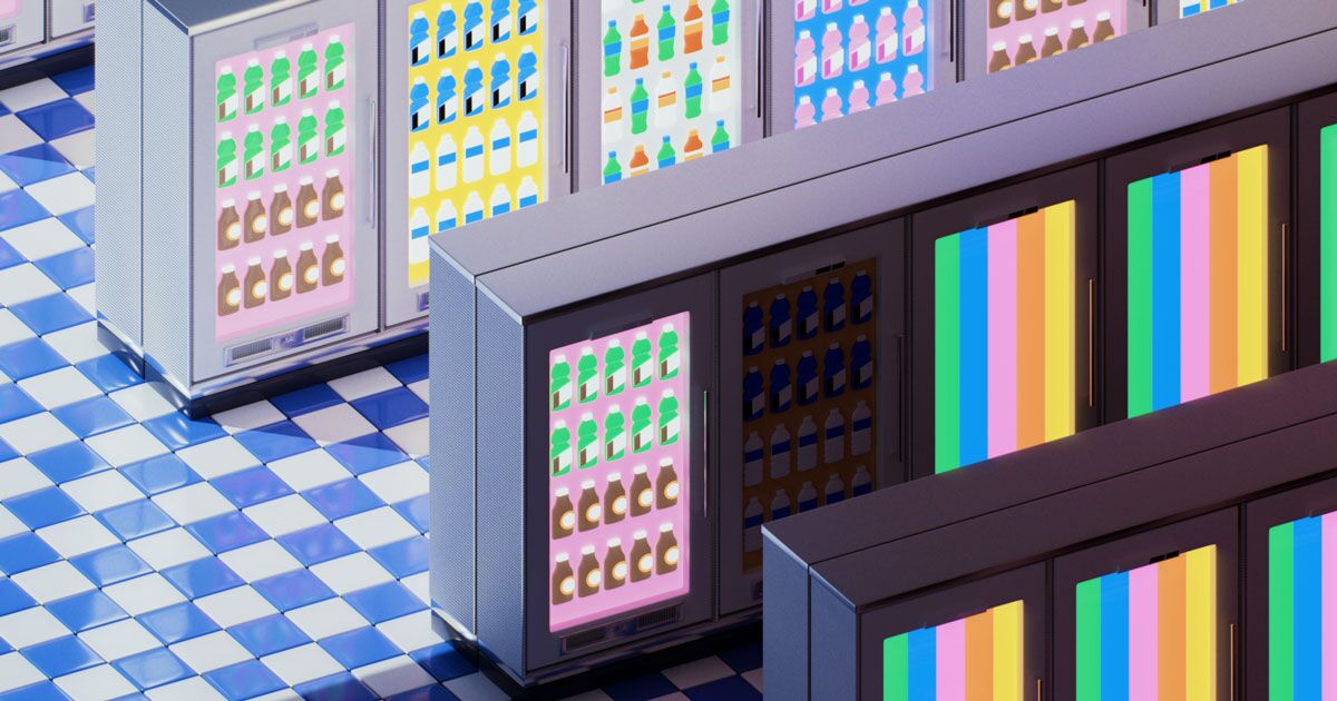 Where the fridge cases were previously lined with simple glass doors, there were door-size computer screens instead. These “smart doors” obscured shoppers’ view of the fridges’ actual contents, replacing them with virtual rows of the Gatorades, Bagel Bites and other goods it promised were inside. The digital displays had a distinct advantage over regular glass, at least for the retailer: ads.
