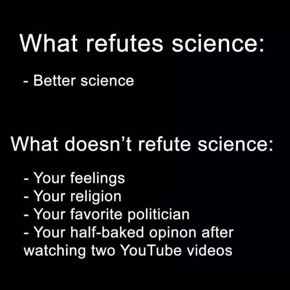 Ahhhhh… Love that line. My brother and his fiance just had a baby and are debating on vaccines or not. They asked me, I said, it’s always better to get them and protect your child from as much as you possibly can. Like all of us here are vaccinated. I recommended that they follow what their doctor recommends. My dad chimes in with, “Doctors don’t know everything, they’re just trying to sell drugs for the pharmaceutical companies, that’s all they care about.” I looked at him and said, “As someone who studied biology in college, there’s a lot that a lot of us don’t know. But seeing as that doctor has had significantly more training than I’ve had, let alone you, I’m going to trust them more than some random article I’ve read online.” He stopped talking to me for a large portion of the day after that.