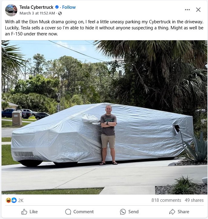 I mean if I were foolish enough to buy such an ugly, hideous, disgusting pile of garbage like the cyber “truck”, I’d be too embarrassed to admit it too. But then again, I guess if I were foolish enough to waste that much money, I’d be too foolish to feel shame.
