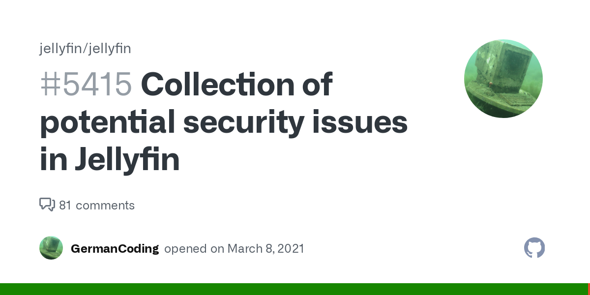 Many of these have already been fixed FWIW, it’s not a collection of open issues.Nevermind, they have only been closed, not fixed. Yikes.Can someone ELI5 this for me? I have a jellyfin docker stack set up through dockstarter and managed through portainer. I also own a domain that uses cloudflare to access my Jellyfin server. Since everything is set up through docker, the containers volumes are globally set to only have access to my media storage. Assuming that my setup is insecure, wouldn’t that just mean that “hackers” would only be able to stream free media from my server?