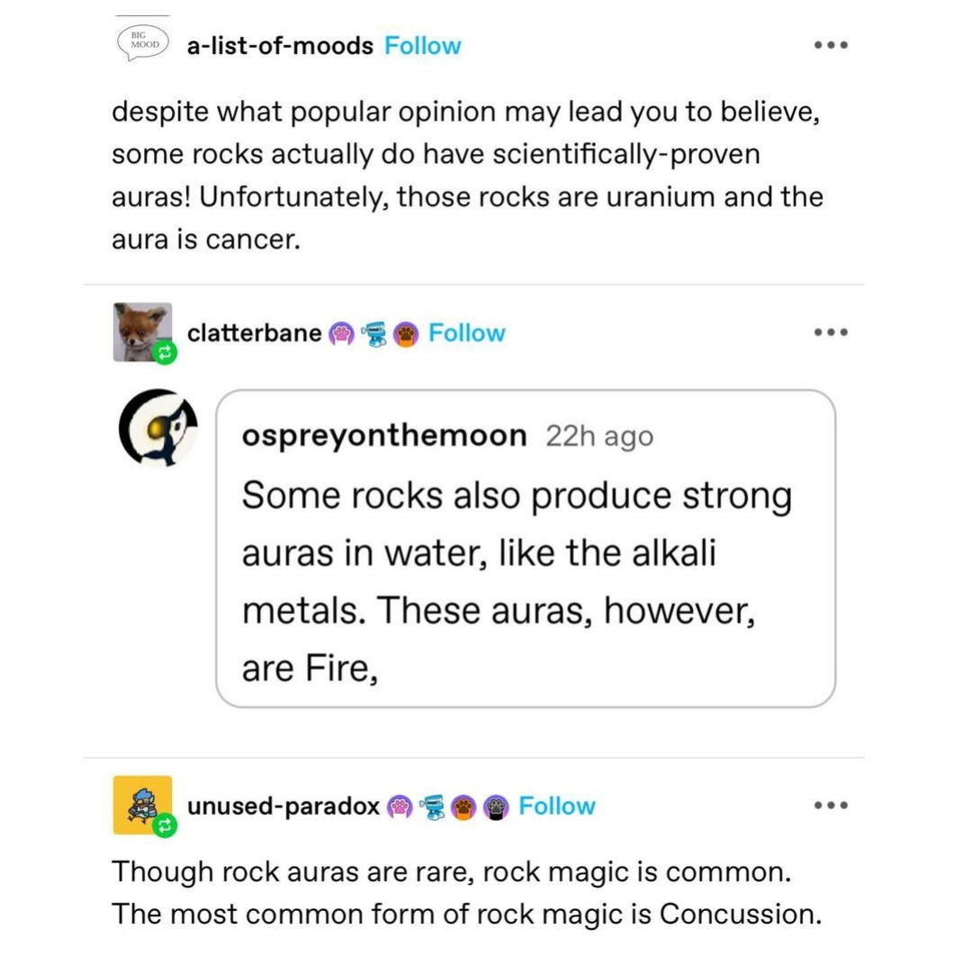 No mention of the truly magical rocks that have a measurable aura and mostly won’t try to kill you, magnets?