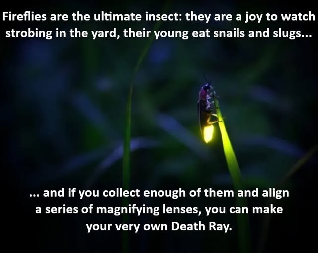 I’m gonna a need someone to do some monster math for how many fireflies I need to make a death ray