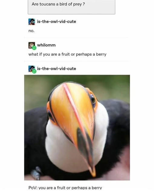I actually got to play with a toucan once, their beaks aren’t very powerful, and they can be very friendly.