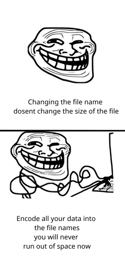 Now with just a filename and 1 bit, you can have any file! The file is just 1 bit. It’s the filesystems that needs more than that.