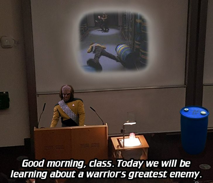 I was soooo hoping for a Worf + barrel cameo or reference.
