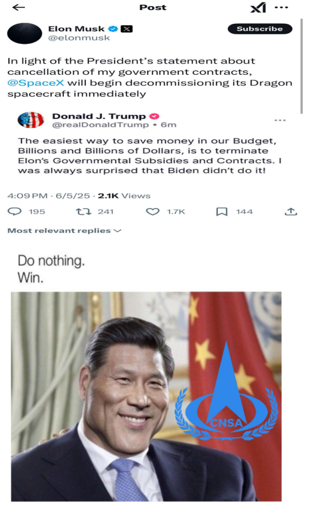 The parent tweet is real, however I believe the “chad CNSA” reply is not.