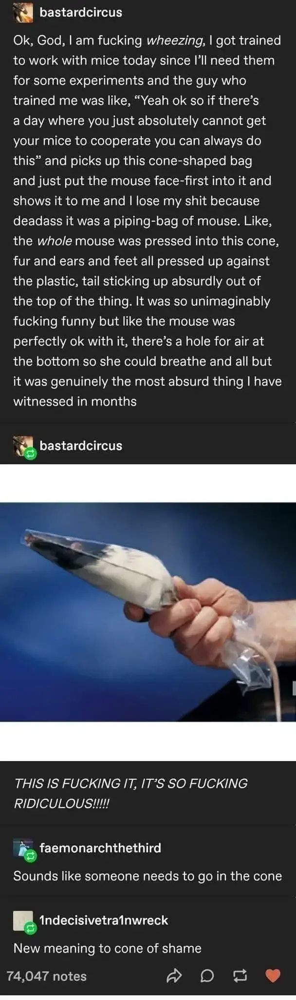rulray@lemmy.dbzer0.com to Science Memes@mander.xyzEnglish · 8 months agoNaughty rats get the tubelemmy.dbzer0.comimagemessage-square11linkfedilinkarrow-up1388arrow-down113file-text