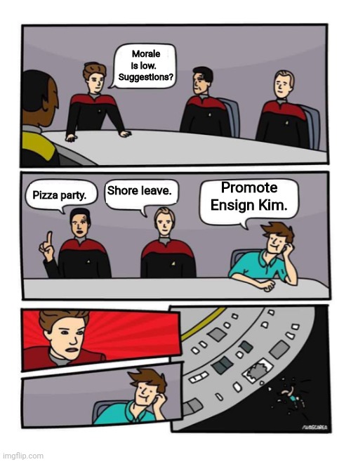 Imagine this starship of your federation is missing and then they come back all looking like overdecorated military junta officers.