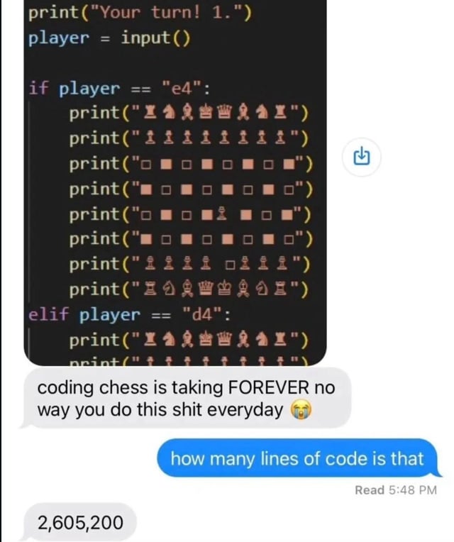 arrow-up1662arrow-down1imageCoding chesslemmy.worldmaris@lemmy.world to Programmer Humor@programming.dev · 8 months agomessage-square54linkfedilink