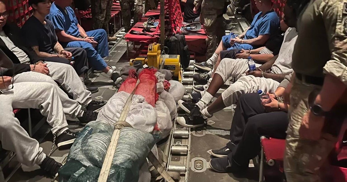 Assistant Department of Homeland Security Secretary Tricia McLaughlin said the deportation flight carrying the deportees landed in South Sudan just before midnight EST on Friday. A photo provided by the department showed the deportees, with their hands and feet shackled, sitting inside an aircraft, guarded by U.S. service members.