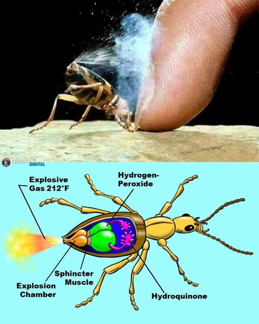The Brachinus crepitans, or bombardier beetle, measures just 2 cm but wields a powerful chemical defense. When threatened, it mixes hydroquinone and hydrogen peroxide inside its abdomen, triggering an exothermic reaction that reaches 100 °C. It ejects bursts of corrosive benzoquinones at 500 pulses per second, burning and repelling predators. This precise, repeatable mechanism has inspired research into reigniting gas turbines in aircraft under extreme conditions as low as –50 °C. Its internal valve and chamber system is now studied in chemical engineering and advanced biomimicry.