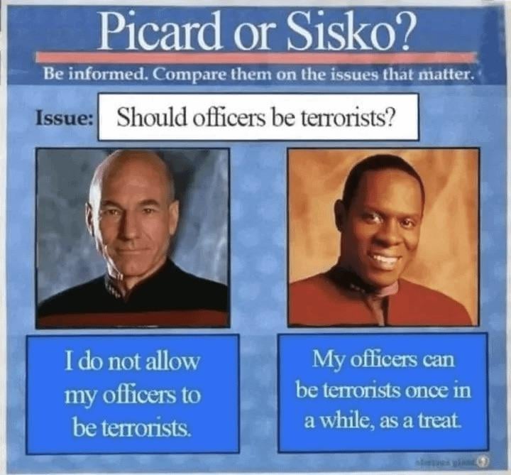 Sisko: As long as you terrorize while wearing your uniform, it’s okay!