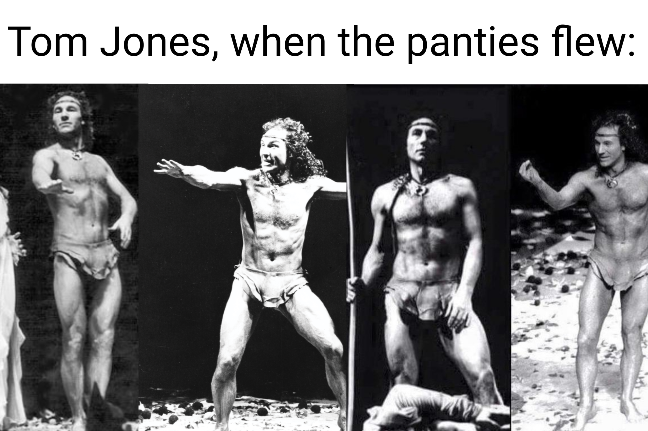 “It started in the Copacabana in 1968. The Copacabana was a night club in New York, and it was a supper club. So I was performing, and I was on the same level — the band was on risers , but I was on the same level as all the tables and chairs. And of course, the business was great, and the tables and chairs were getting closer to me all the time. I didn’t have a lot of room left to perform. So I was perspiring a lot, and so people were handing me table napkins — you know wipe it off, hand it back. So this lady stood up — you had to be careful because there were a lot of gangsters in this club, and so their wives and girlfriends, they would be there, so you had to tread lightly – this one lady stood up, and just lifted up her dress and took her underwear off and handed 'em to me. You know, I used to sing in clubs in South Wales, and if somebody throws something at you, you try to turn it to your advantage. So I wiped my brow with the underwear and handed them back and said, ‘Watch you don’t catch cold like that’ and it just went from there. But it became a joke then, people were bringing them in bags, saying ‘There’s Tom Jones, throw underwear at him!’ There was a picture of a man who was a stage manager, with a big broom, just sweeping 'em all up. It backfired on me, because it turned out more of a joke than it turned out to be.”