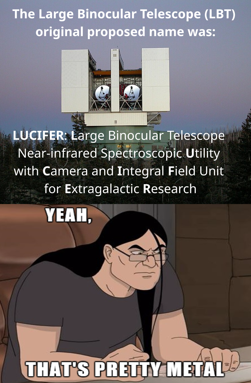 einfach_orangensaft@sh.itjust.works to Science Memes@mander.xyzEnglish · 5 months agoSadly this was build to late to have been part of Nasa's Satellite Automatic Tracking Antenna Network (SATAN)sh.itjust.worksimagemessage-square8linkfedilinkarrow-up1338arrow-down17