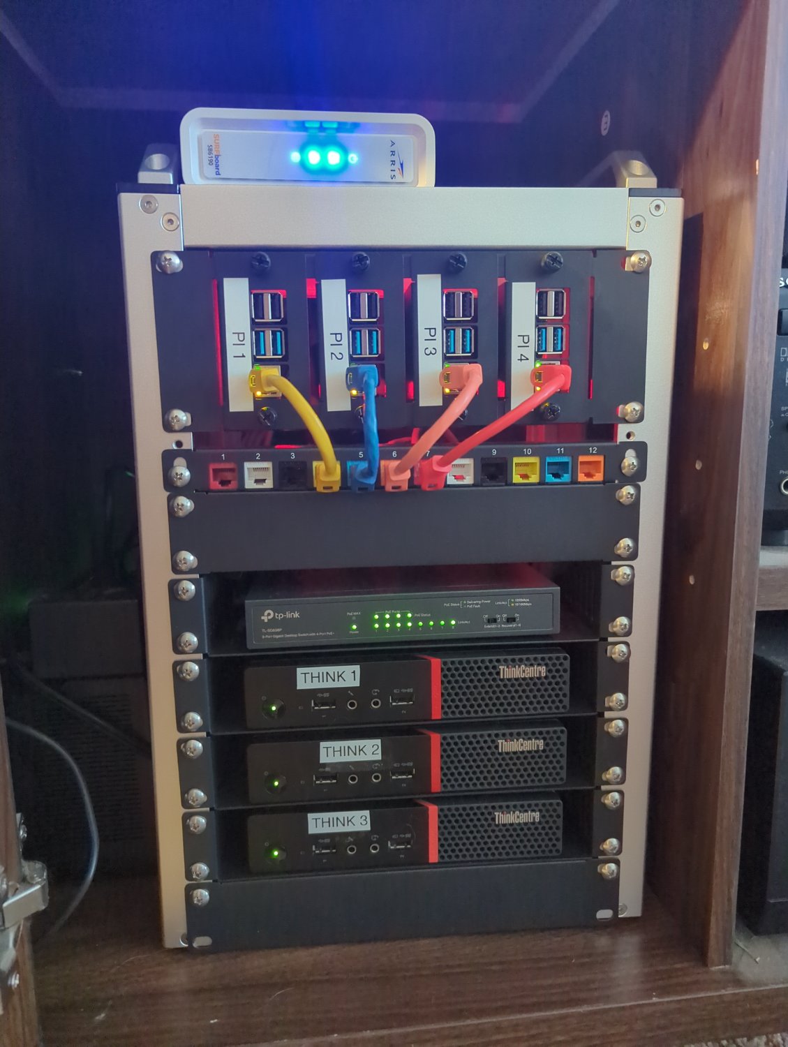Looking good! Funny I happen across this post when I’m working on mine as well. As I type this I’m playing with a little 1.5” transparent OLED that will poke out of the rack beside each pi, scrolling various info (cpu load/temp, IP, LAN traffic, node role, etc)