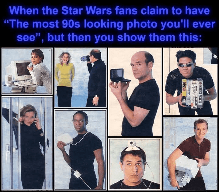 God I love this, from the weirdness of carrying a printer while smiling - nobody ever smiles in vicinity of a printer - and the SW cast looking like a family photo.