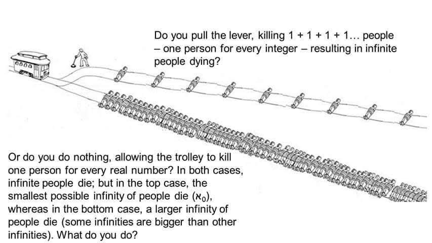 The second one, because the density will cause the trolley to slow down sooner, versus the first one where it will be able to pick up speed again between each person. Also, more time to save people down the rail with my handy rope cutting knife.