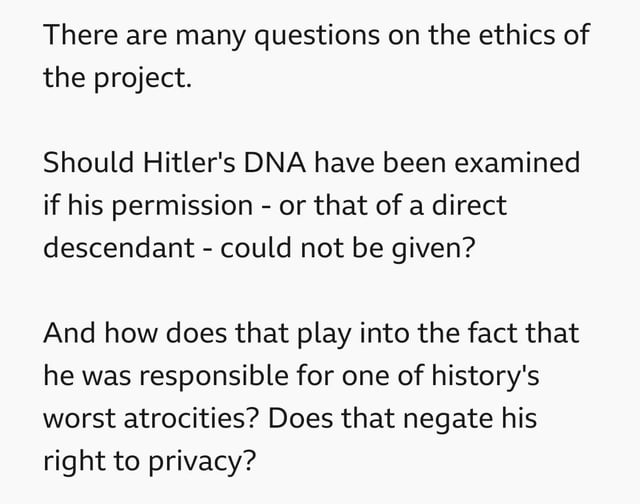 It’s both deeply essentialist, and insulting to people’s intelligence. If you’re planning on studying hitler’s DNA, who cares, knock yourself out. But it’s ridiculous to think all but the worst people are going to believe there’s an “evil” gene.