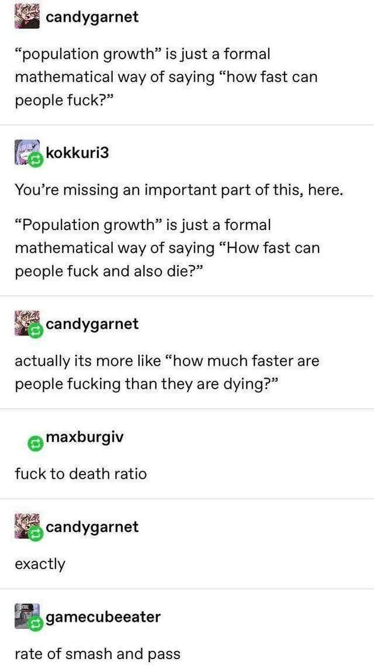 People have all kinds of sex without procreating. The ratio is actually raw-dogging without birth control to death.