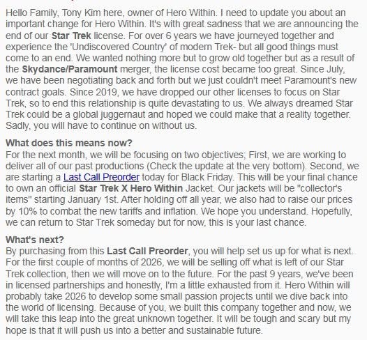 arrow-up112arrow-down1imageHero Within Announce End of Licensingstartrek.websitehopesdead@startrek.website to Star Trek Social Club@startrek.websiteEnglish · 2 months agomessage-square1linkfedilinkfile-text