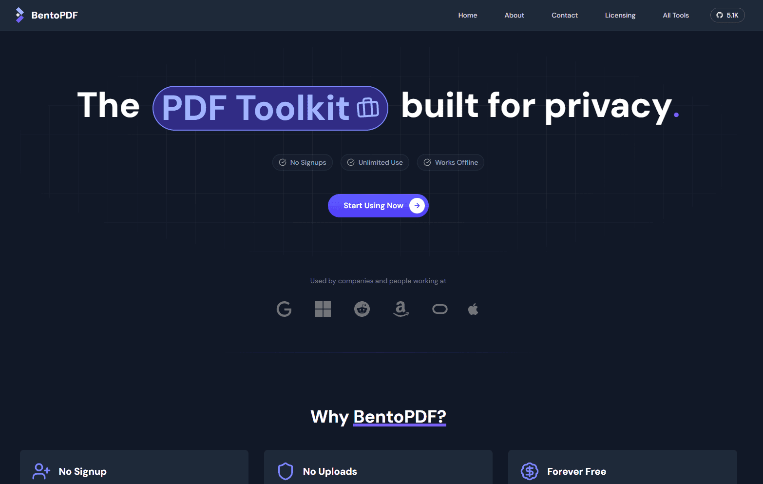 Just tried bentopdf, and lot of things are missing Like
