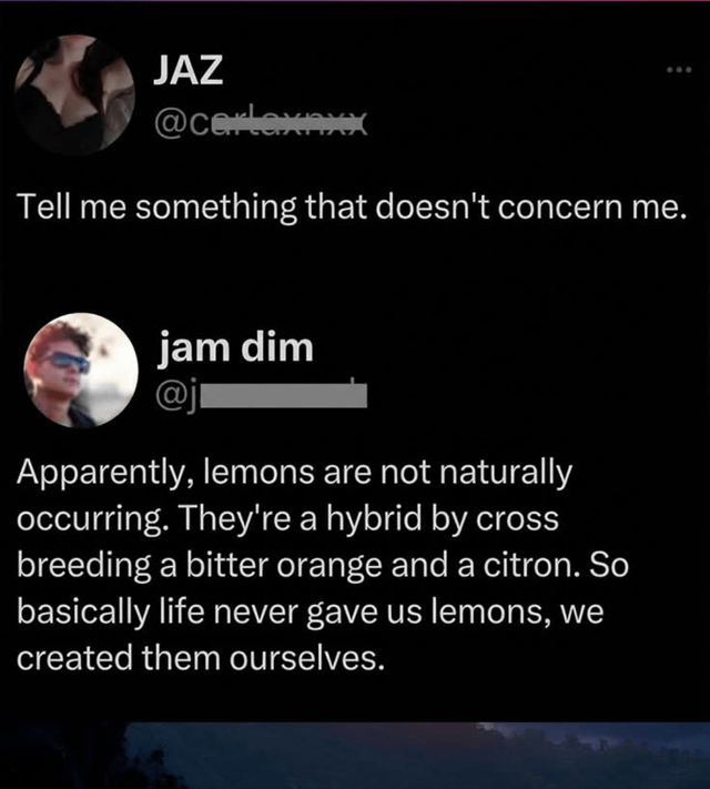 Yeah, iirc there are only four original naturally-occurring citruses, of which one is inedible. All the rest are hybrids.