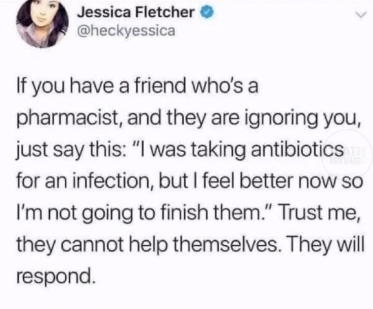ickplant@lemmy.world to Science Memes@mander.xyzEnglish · 17 days agoLife pro tip for friends of pharmacistslemmy.worldimagemessage-square68linkfedilinkarrow-up1869arrow-down112