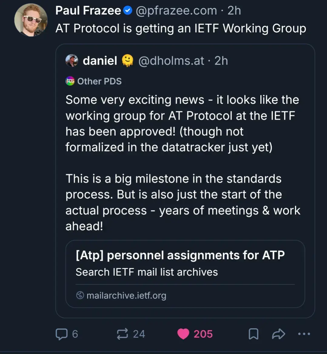 I don’t understand fedivwrse at all but I can see how this would take it to the next level. Ietf has a lot of weight so it’s another plus to reduce the weight of IEEE and US dependency.