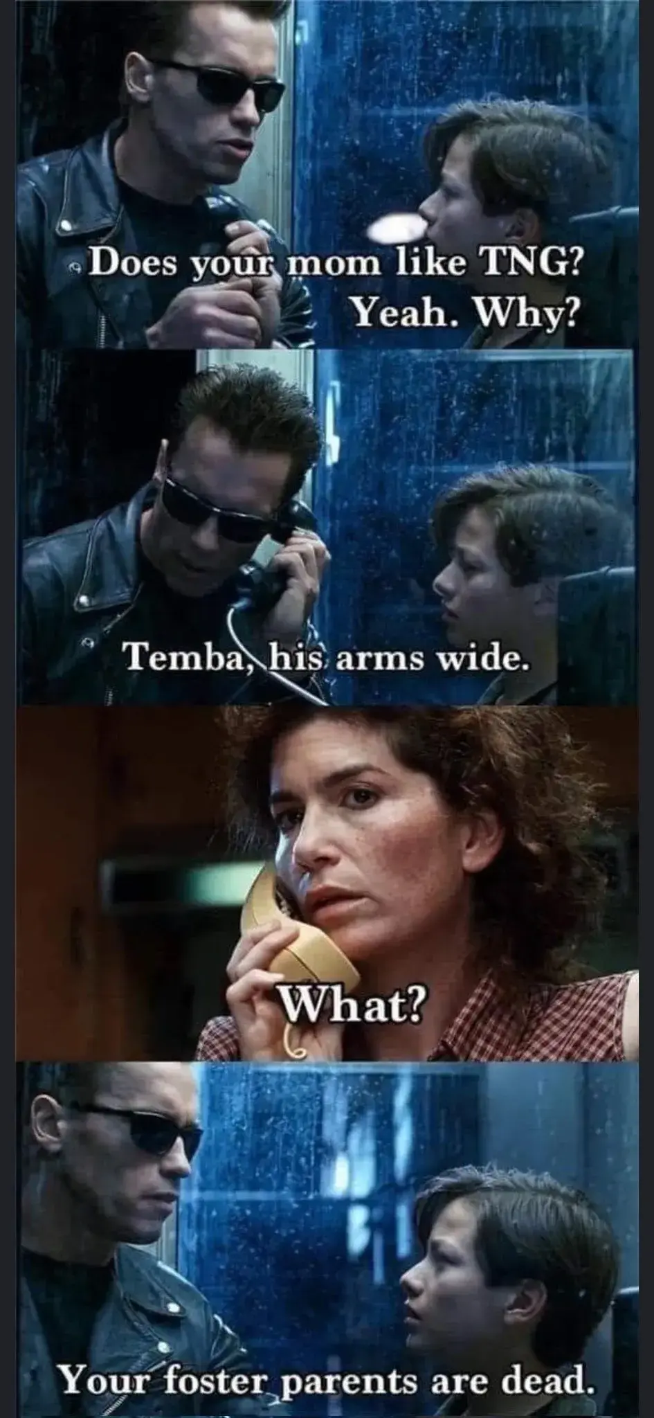 Sisko, seconds before leaving the runabout: “Computer, send a message to Captain Picard on the Enterprise. We good.” exits quickly because he’s got an appointment with Ducat to reenact the gollum-frodo fight