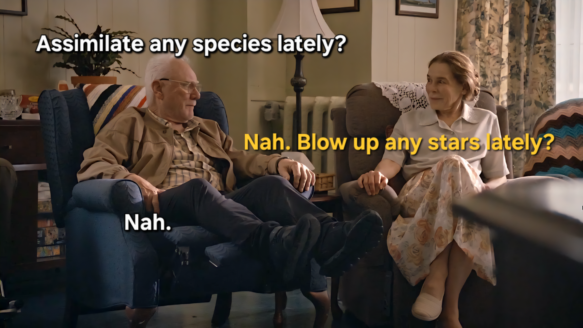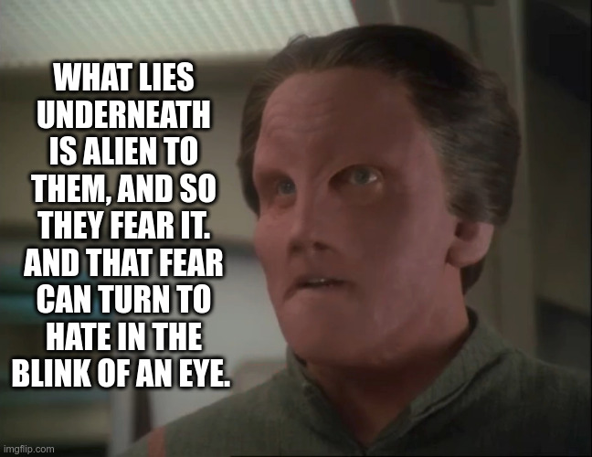 Every episode just immediately jumps into whatever world that O’Brien created in the simulations where he keeps every buffer clone trapped forever … sometimes it’s on DS9, sometimes on the Enterprise, sometimes on a Borg ship, sometimes in 19th century Louisiana, sometimes 23th century California, sometimes ancient Rome, sometimes on Kronos, sometimes on an ice moon, sometimes just free floating in empty space