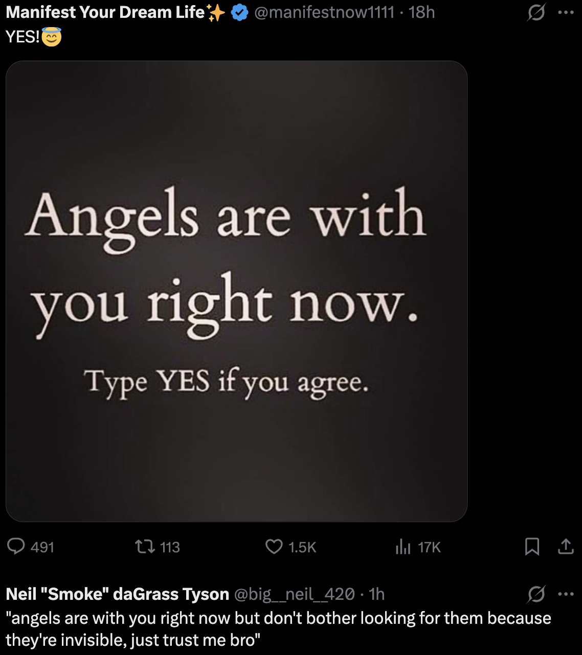 51·1 month agogod actually DOES answer your prayers, it just seems like he doesn’t because you’ve never prayed the right way. you’ve never done the dance that goes along with it, and until you master the steps, god isn’t doing shit for you